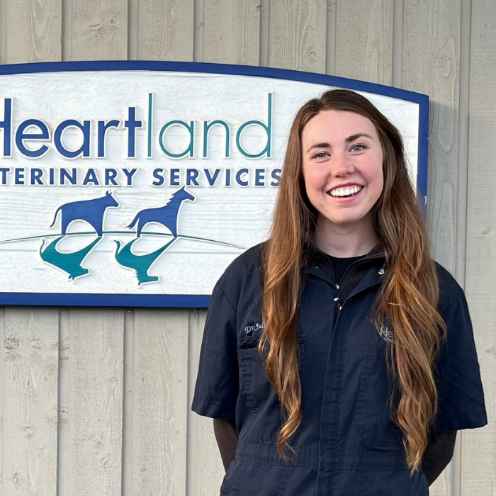 Melanie joined the large animal team at Heartland in 2019 for both food animal and equine practice. She enjoys ruminant medicine and surgery and working with producers. Melanie enjoys equine practice, with an interest in primary care, emergency care, and equine reproduction. Melanie is currently enrolled in a Veterinary Spinal Manipulative Therapy course, with hopes of providing additional treatment modalities for pain management and lameness to her equine patients.